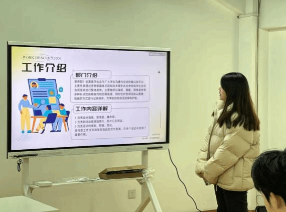 会议第二项,学生会各部门进行述职。办公室部、校文部、宣传部、实践拓展部、学习部、权益保障部依次汇报过去一年的工作成果以及存在的问题和困难,同时对未来的发展做出展望。