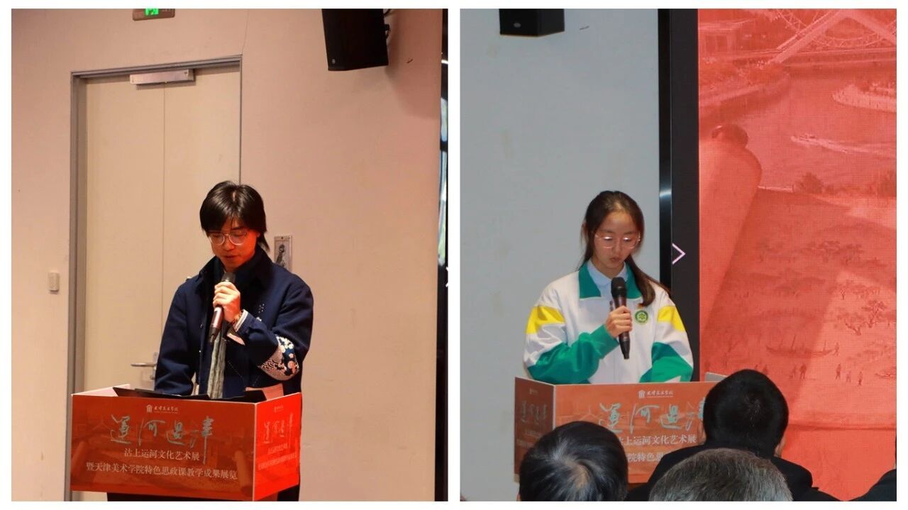 青年学子作为文化传承的新生力量,在创作中践行思政育人理念。入展学生代表、天津美术学院中国画学院2025级研究生宫瑞鑫分享了以笔墨描绘运河文脉的创作感悟;一体化思政联合校学生代表、实验中学九年级移智多同学从青少年视角抒发了对运河文化的热爱与传承决心。