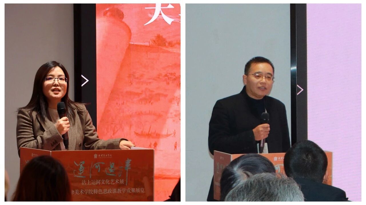 天津美术学院党委副书记、院长邱志杰,市纪委监委驻天津美术学院纪检监察组组长李永奎,市委宣传部文艺处处长刘宗锦,市教委学生处副处长满荣,和平区委宣传部副部长侯彦一,河北区委宣传部副部长崔国山,西青区委宣传部副部长张蕾,和平区教育局副局长冯耀忠,天津图书馆党委书记李冠龙等领导嘉宾,天津美术学院相关职能处室、二级学院负责人,运河城市思政一体化联合体代表(北京物资学院)、全市十余所高校马克思主义学院负责人、中小学师生代表及运河历史文化专家共同见证这场文化与思政交融的艺术盛会。开幕式由天津美术学院党委学工部部长、校团委书记史雅宁主持。