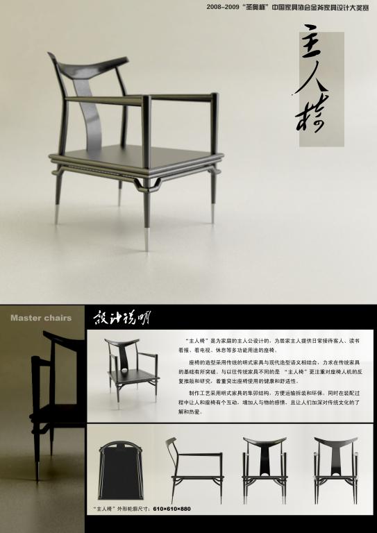 2009年“主人椅设计”获得中国家具协会专业组设计作品铜奖;