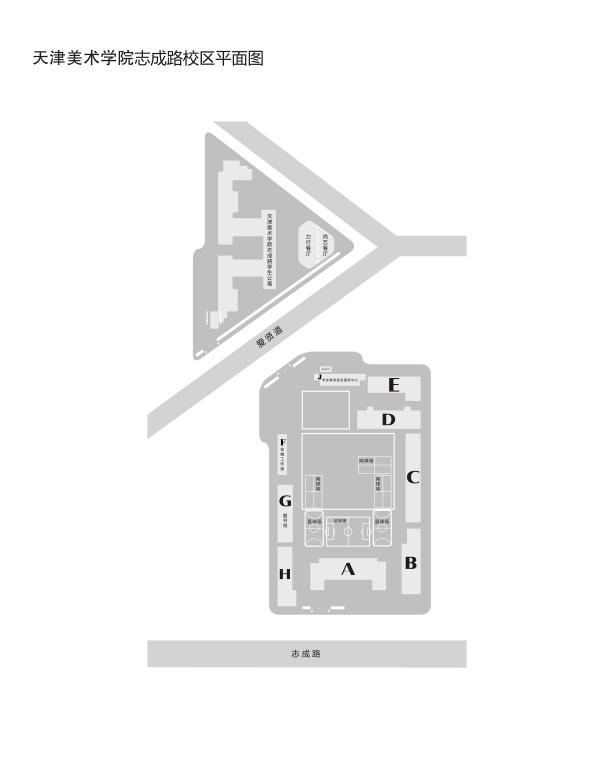 天津美术学院志成路校区 地址:天津市河北区志成路七号 邮编:300402 校区代码:4 1.教学科研区域:a楼、b楼、c楼、e楼(5-6层)、f楼、h楼 2. 办公区域:学生事务综合服务中心(j楼) 3. 学生公寓:天津美术学院志成路学生公寓、d楼、e楼(1-4层 4. 餐厅:尚艺餐厅(教职工)、力行餐厅(学生) 5. 其他区域:图书馆(g楼)、网球场、篮球场 |